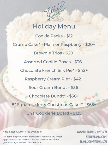 Custom Orders: Email hello@elliesbakeshoppe.com for custom orders!